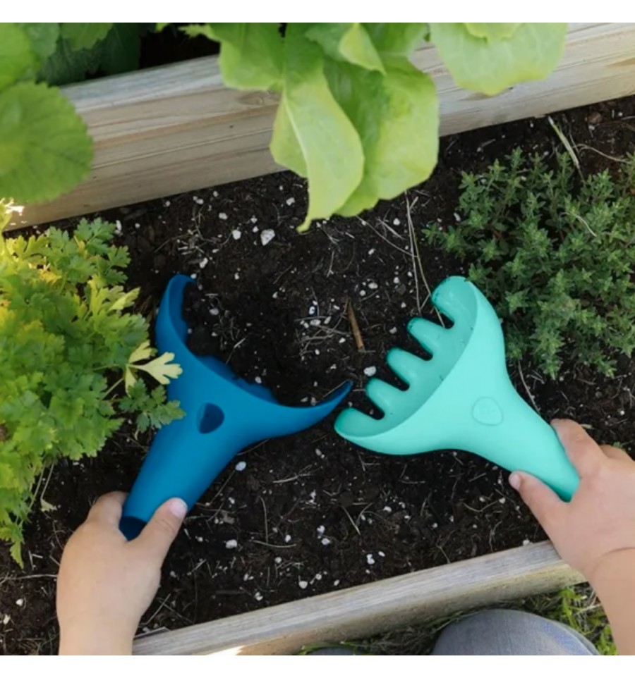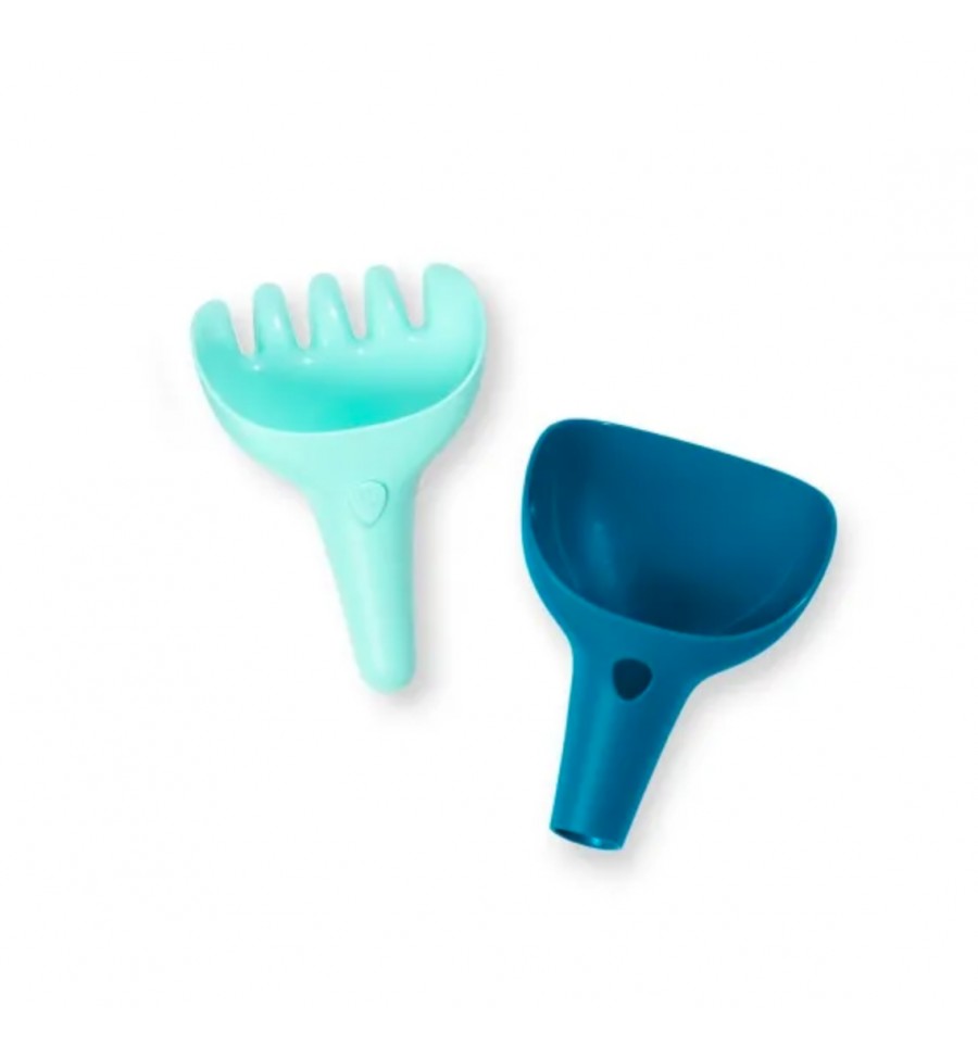Ce set Raki Océan est composé d'une pelle et d'un râteau qui s'emboitent l'un dans l'autre. Ils peuvent également servir d'entonnoir ou de tamis pour s'amuser avec de l'eau ou du sable.