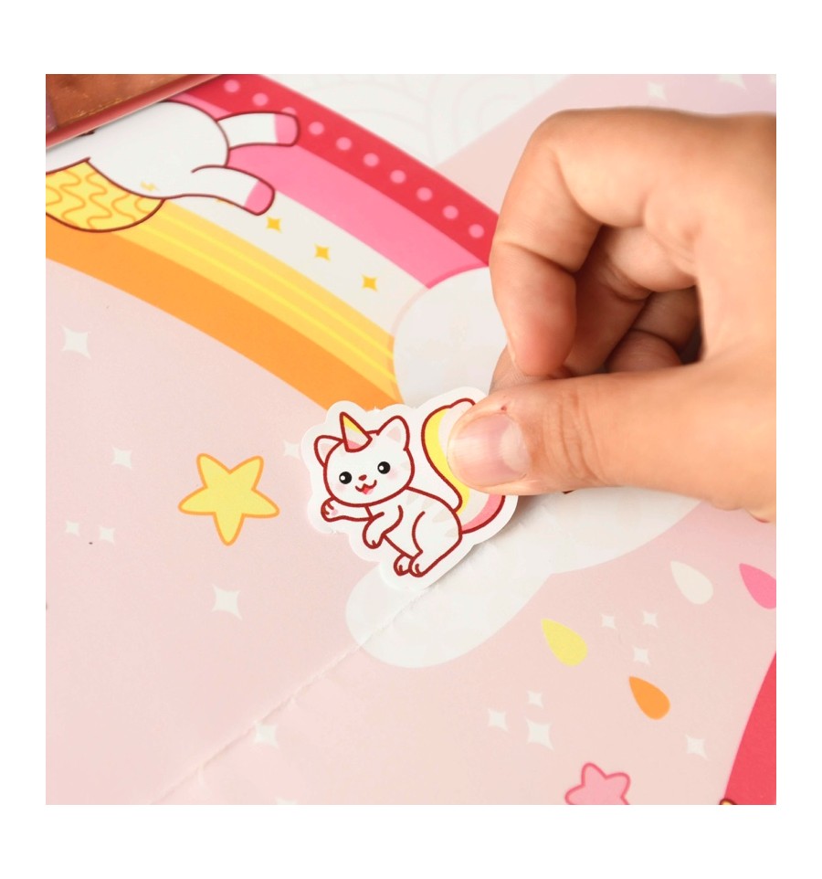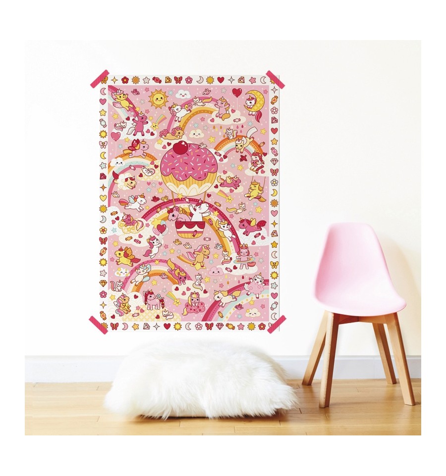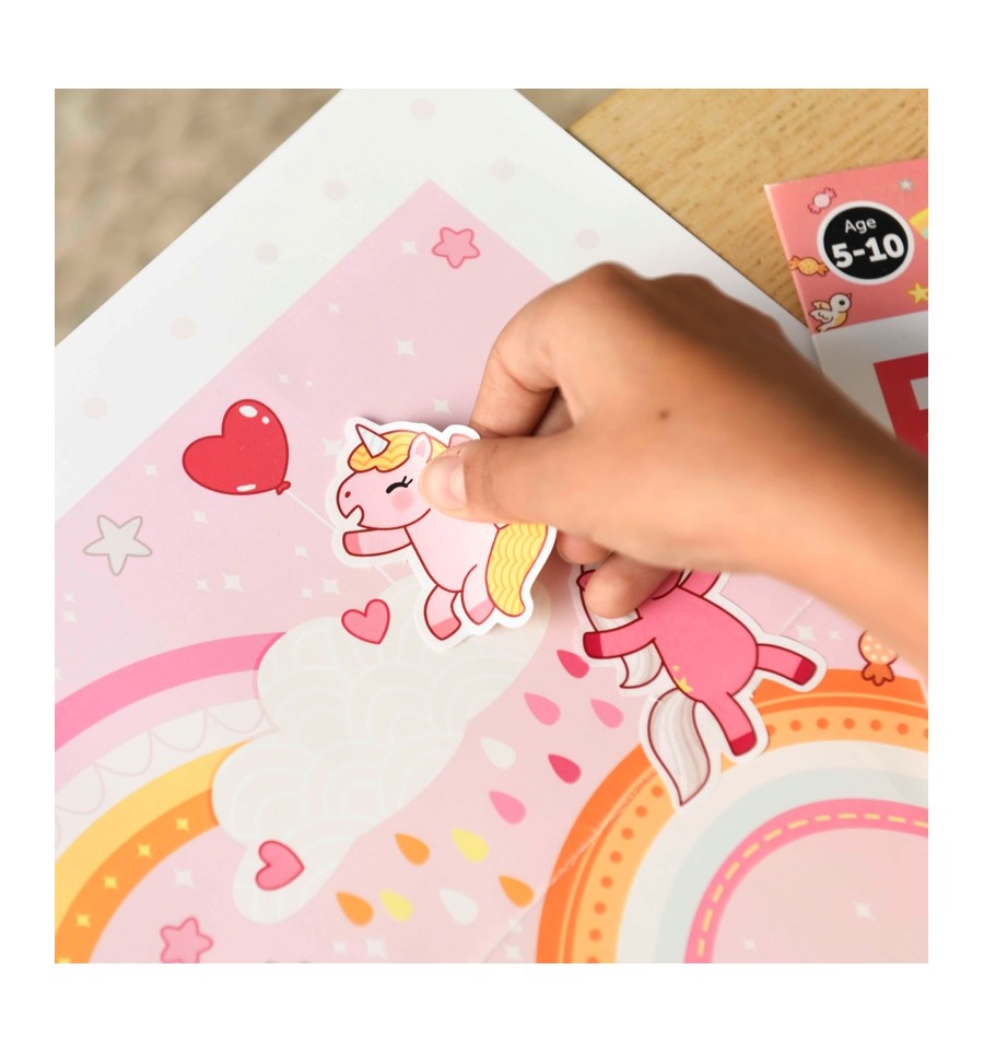 Laissez s'exprimer l'imagination de vos enfants grâce à ce grand poster sur lequel, ils vont adorer coller plus de 150 autocollants sur le thême des licornes.