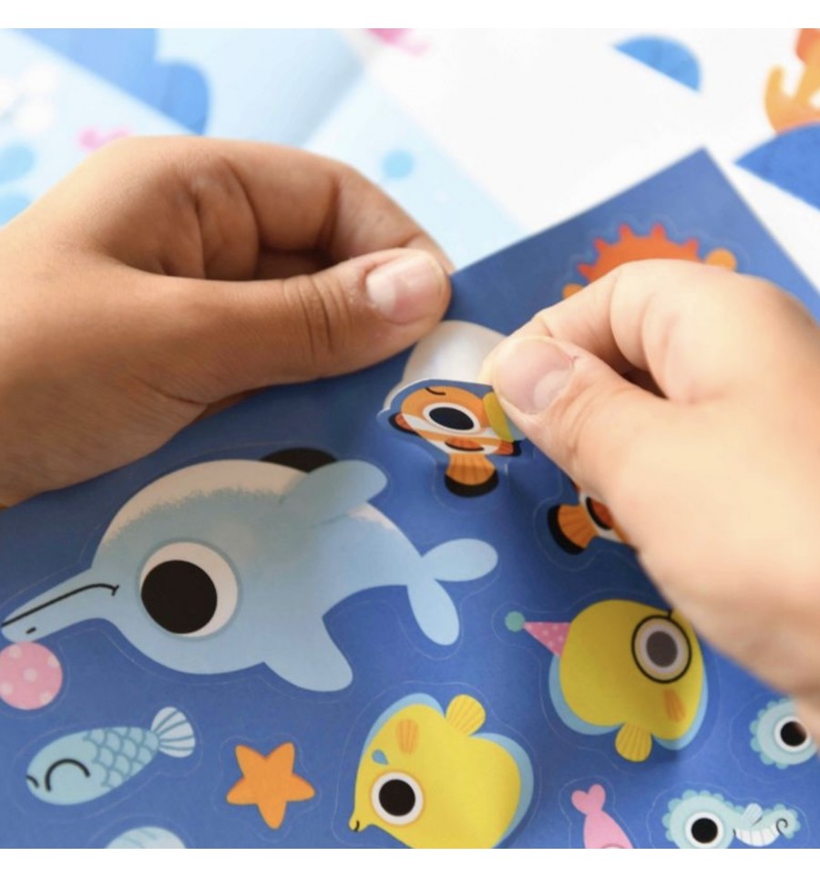 Laissez s'exprimer l'imagination de vos enfants grâce à ce grand poster sur lequel, ils vont adorer coller plus de 150 autocollants sur le thème de l'océan.