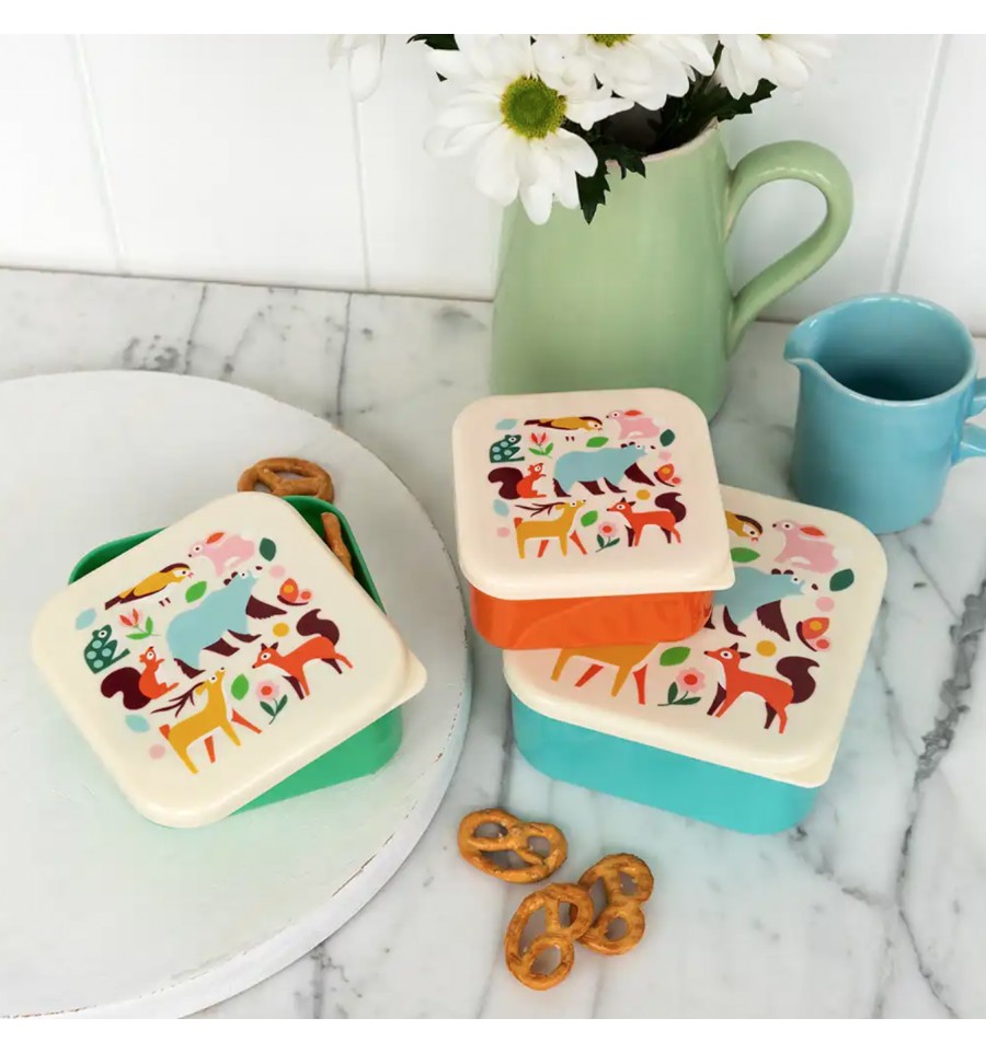 Set de 3 boites à goûter Rex London avec des animaux de la forêt.