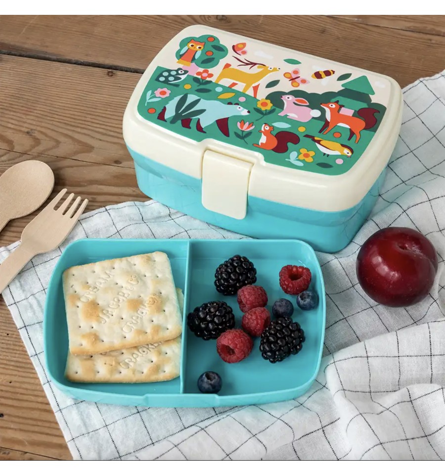 Cette lunchbox comporte un plateau amovible avec 2 compartiments et un grand espace en dessous.