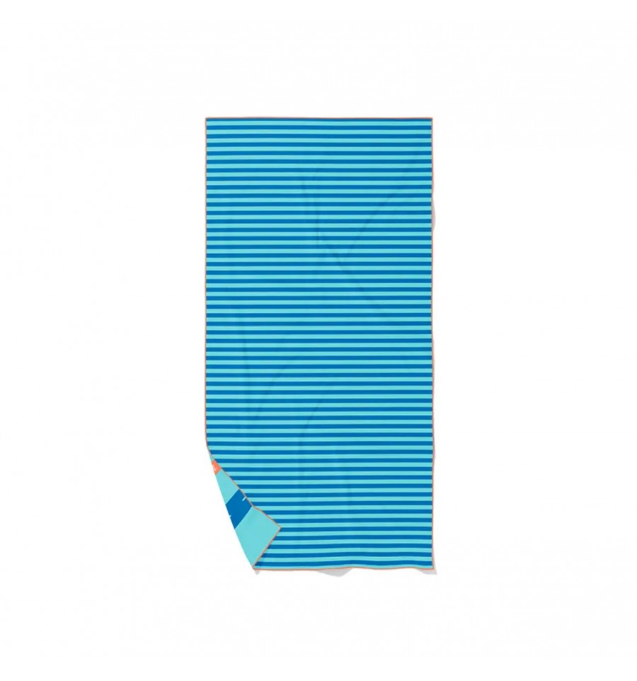 Au verso, un design graphique aux rayures turquoises et bleues, hyper jolies.