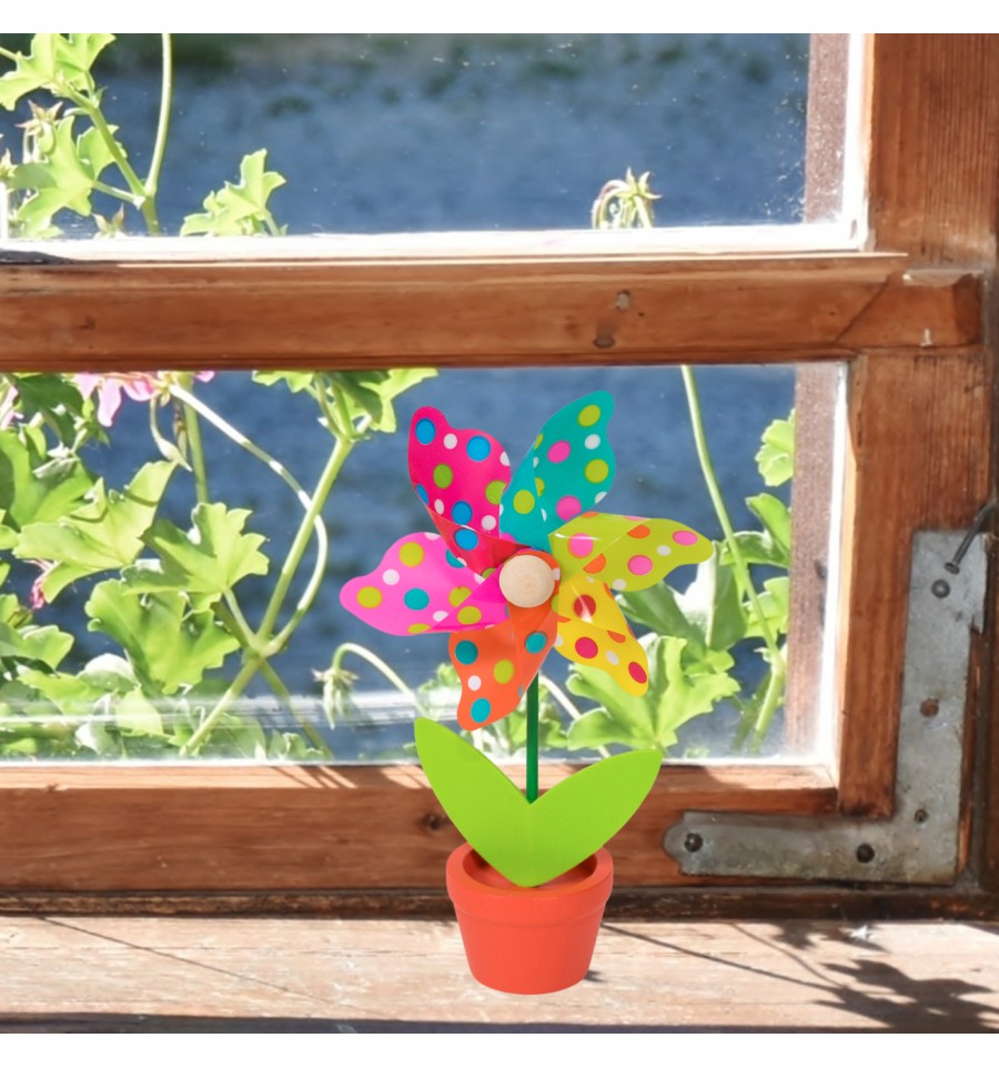 Ludique, ce petit moulin à vent en forme de pot de fleurs va apporter couleurs et un brin de fantaisie dans votre cuisine, votre salon et toute autre pièce de la maison.