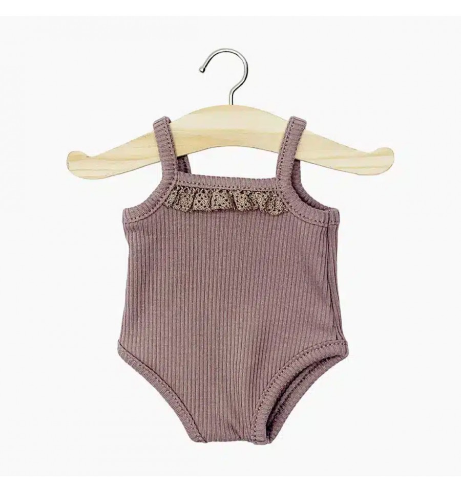 Ce body à bretelles en maille côtelée de couleur Orchidée convient aux poupées de 34 cm.