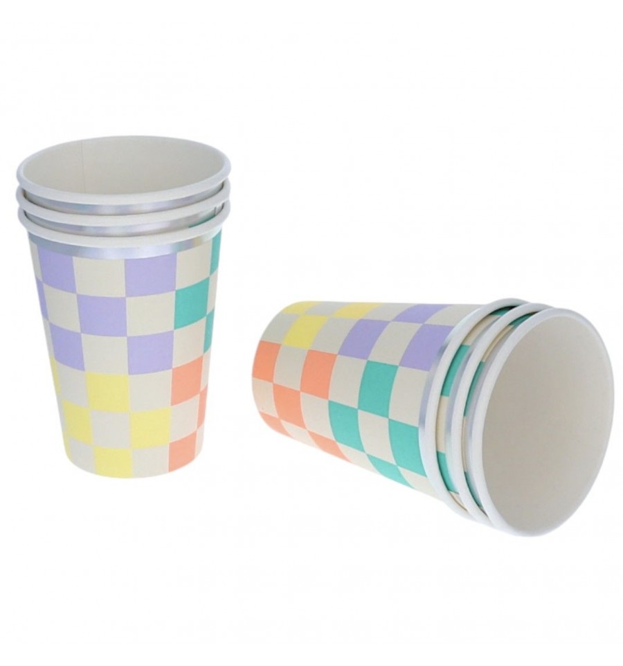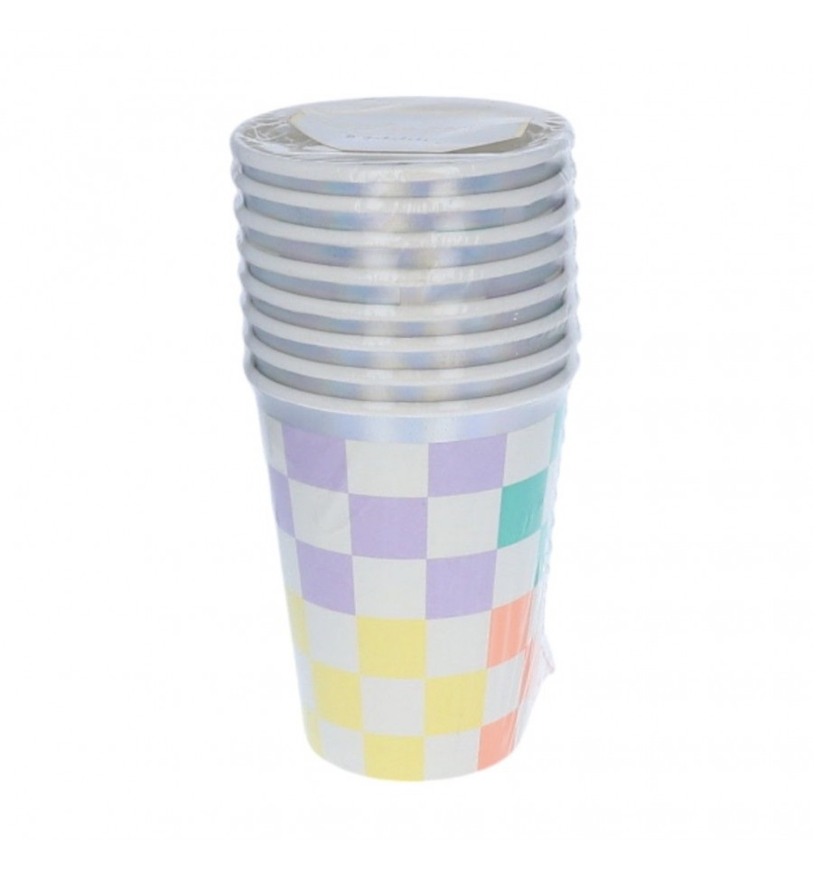 8 gobelets en carton parfaits pour un goûter coloré ou pour un anniversaire.