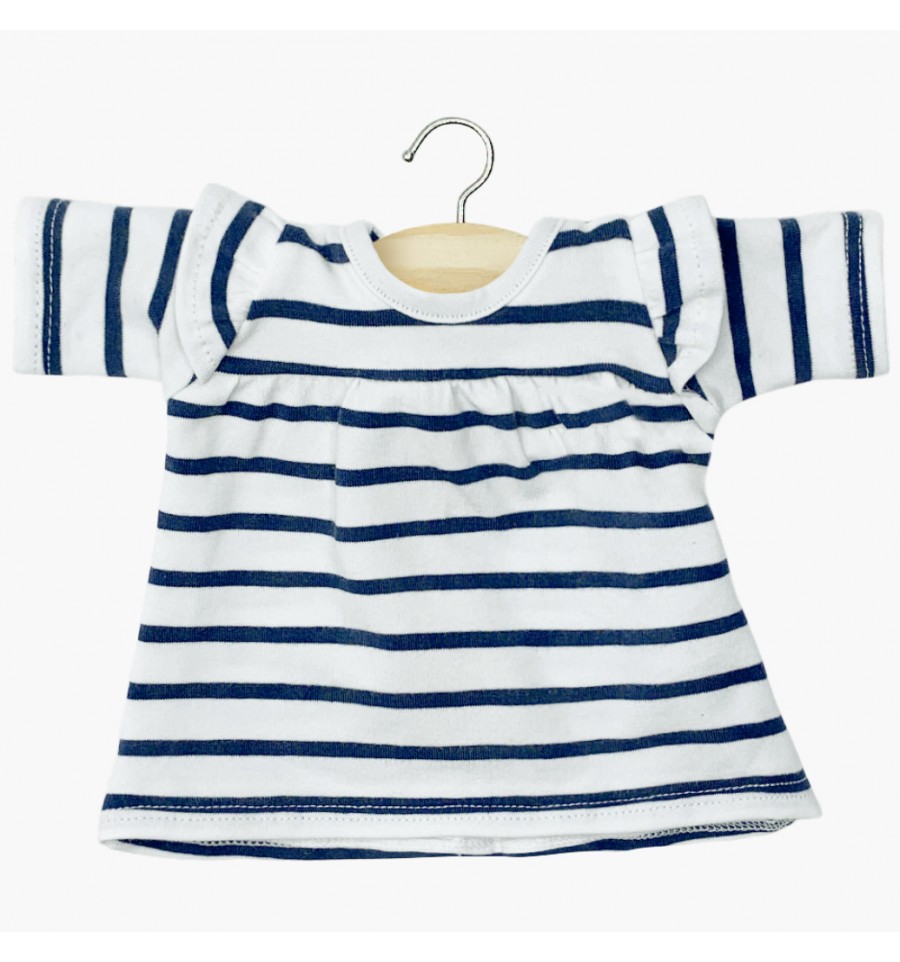 Toute douce en jersey avec des rayures bleues marines, elle a des manches longues et des boutons pression sur l'arrière.