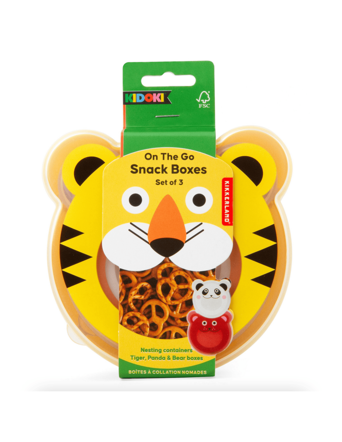 Set de 3 boites à goûter Kikkerland avec des animaux trop mignons tels que le tigre, l'ours et le panda.