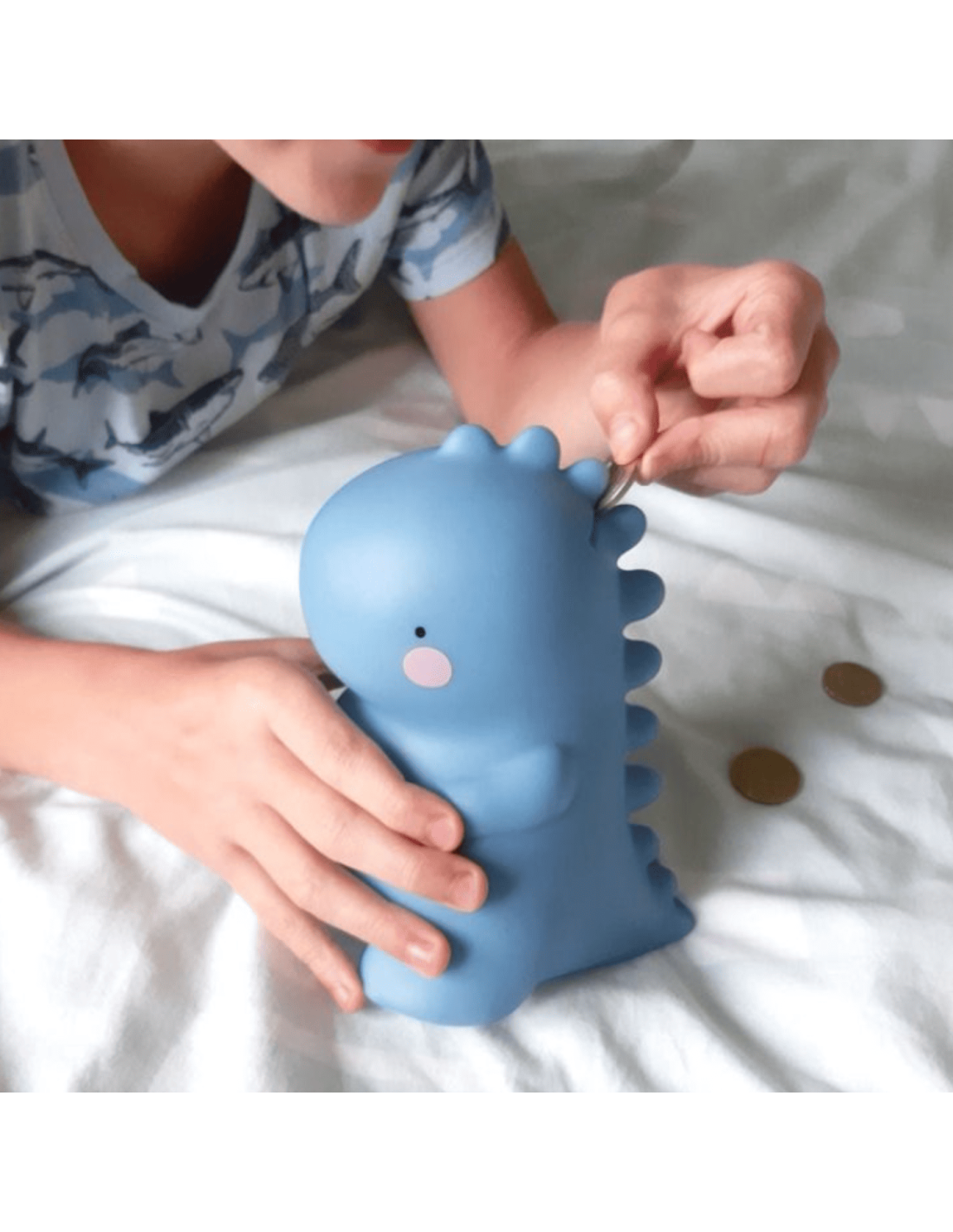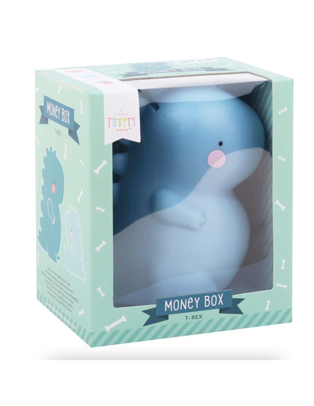 Rencontrez le merveilleux T-rex en forme de tirelire de la jolie marque a Little Lovely Company. Ce dino-tirelire rigolo et dodu permettra à vos enfants de glisser leurs pièces de monnaie. Il veillera sur les économies de vos enfants en montrant ses crocs tous mignons et ses pattes avant délicieusement minuscules contre toutes attaques de dépenses imprévues.