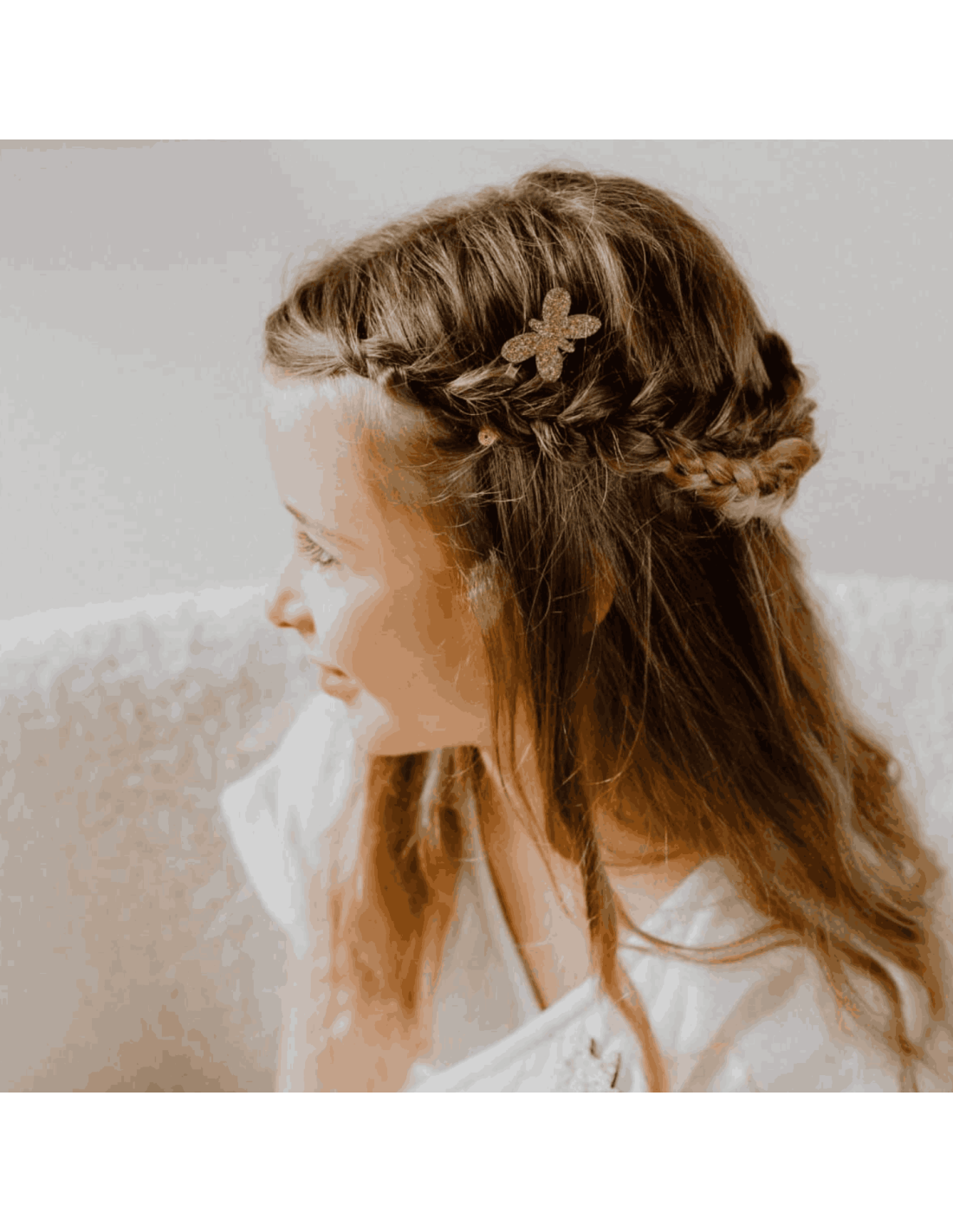 Ce duo de jolies barrettes papillons à paillettes couleur dorée va séduire vos petits loups.