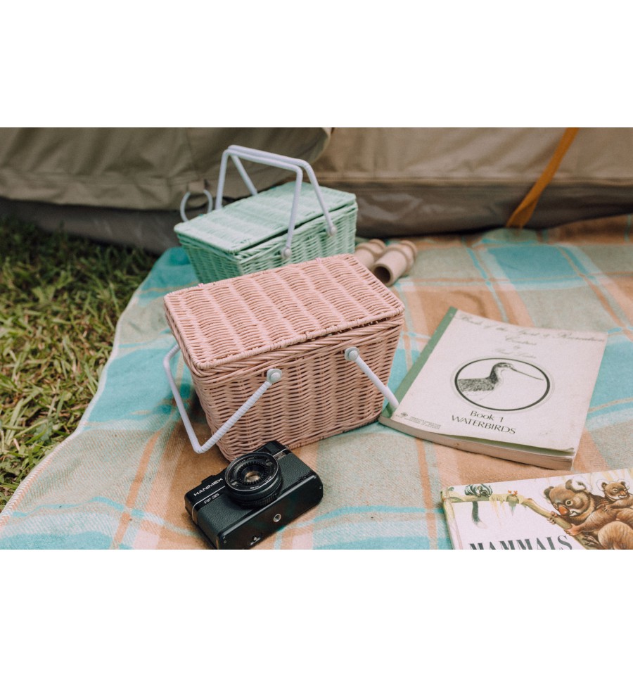 Vos enfants vont encore plus adorer les piques-niques grâce à cet adorable panier en rotin. De couleur "mint", il trouvera facilement dans une chambre d'enfant ou pour partir en promenade ramasser 1001 trésors.