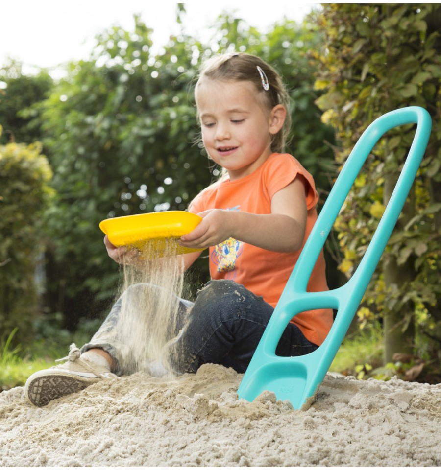 Ergonomique, elle permet aux enfants de l'utiliser avec leurs mains ou leurs pieds pour jouer dans le sable ou dans le jardin, à la montagne.