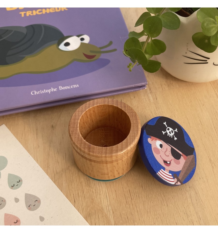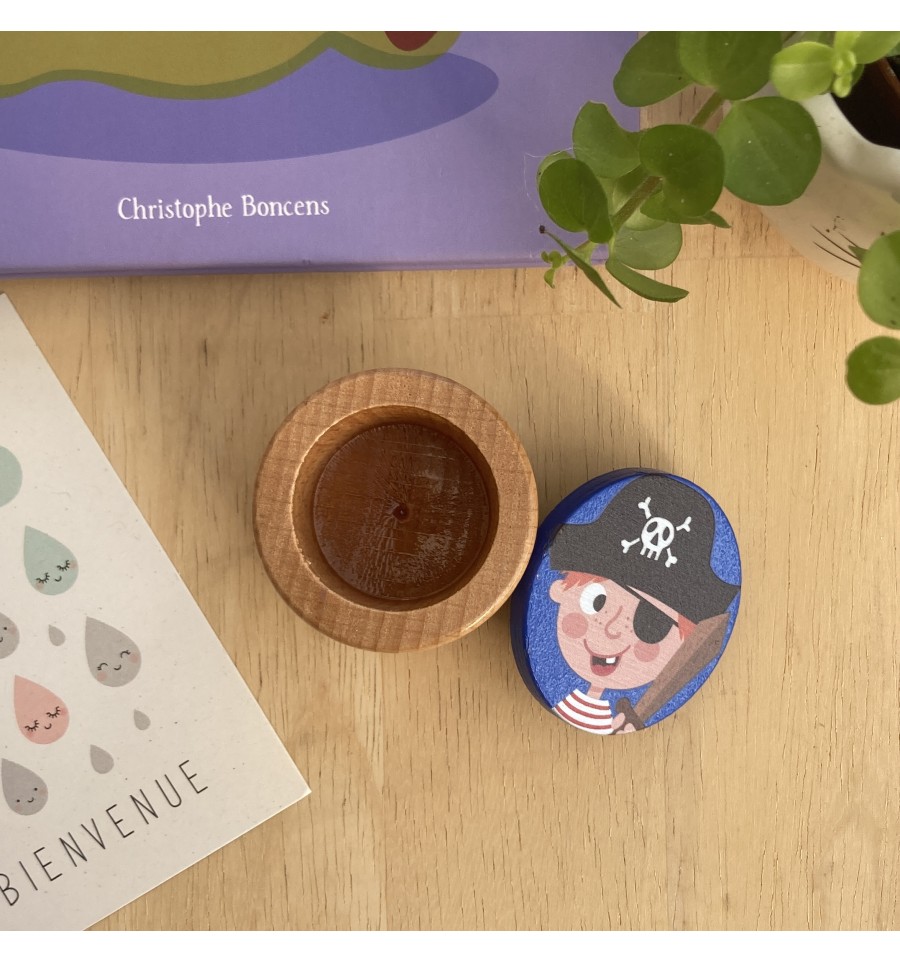 Le couvercle est illustré d'un petit pirate pour plus de fantaisie.