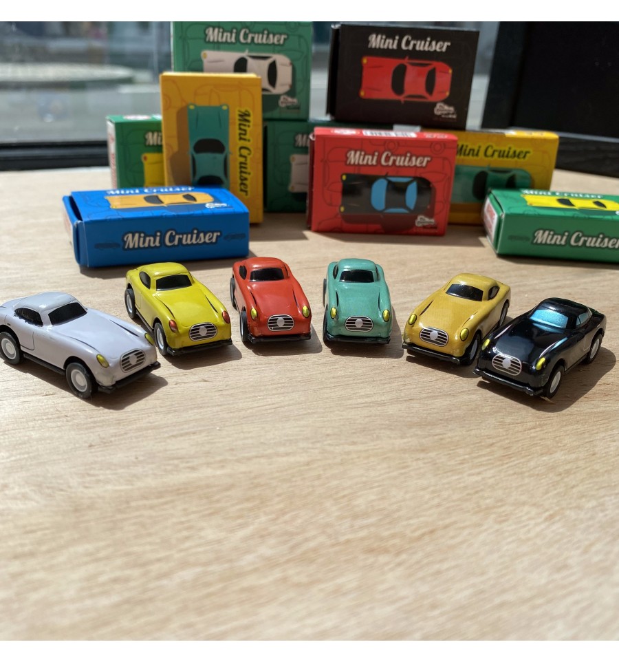 Mini voiture en métal au look vintage. Emballée dans une jolie boite en carton très rétro !