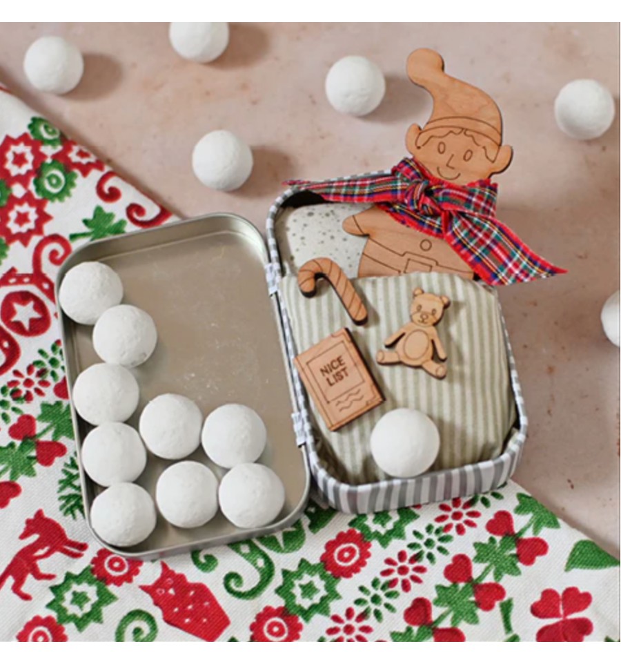 Chouette activité créative à proposer aux enfants pour se préparer à Noël, et facile à glisser dans un calendrier de l'avent, cette boite en métal Cotton Twist renferme tout le nécessaire pour personnaliser eux-même un super petit elfe !