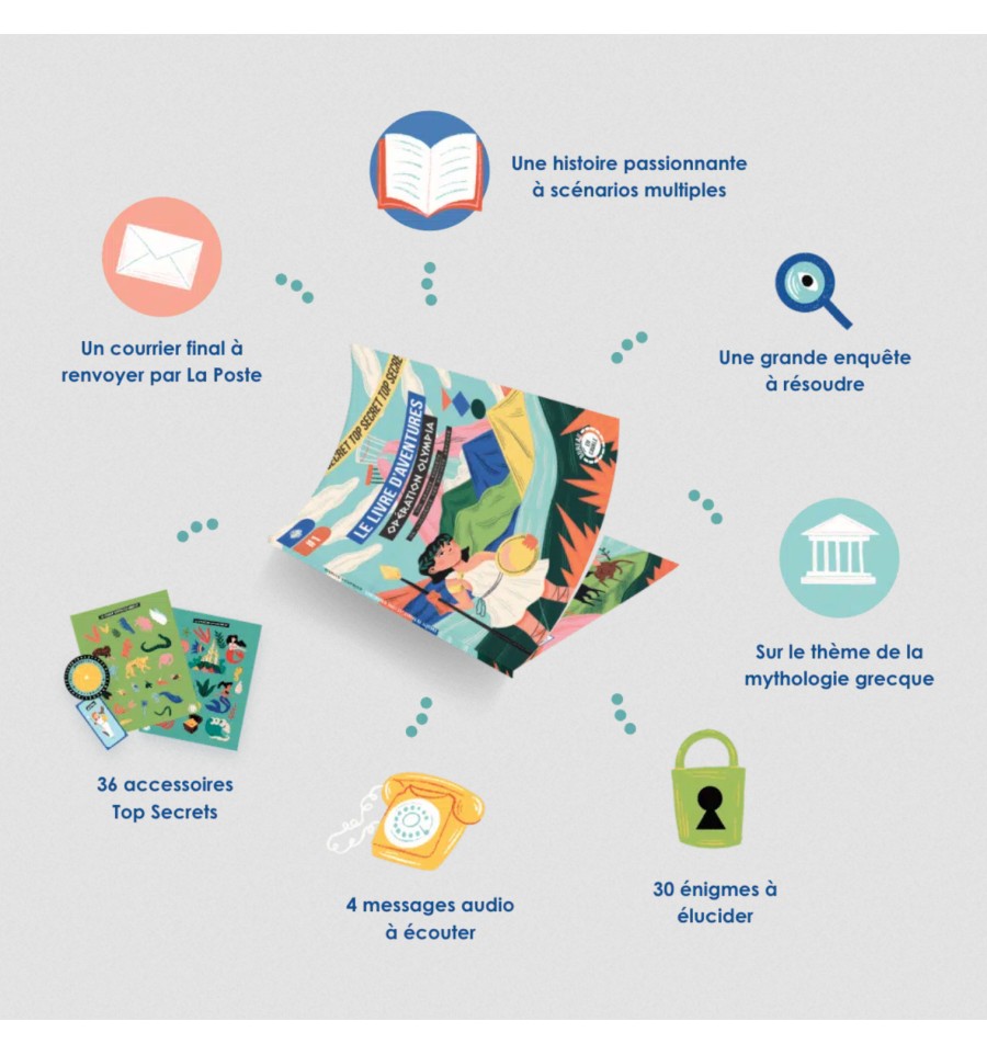 1 Livre d'Aventures de 88 pages incluant 36 accessoires d'enquête à dévoiler, découper et manipuler