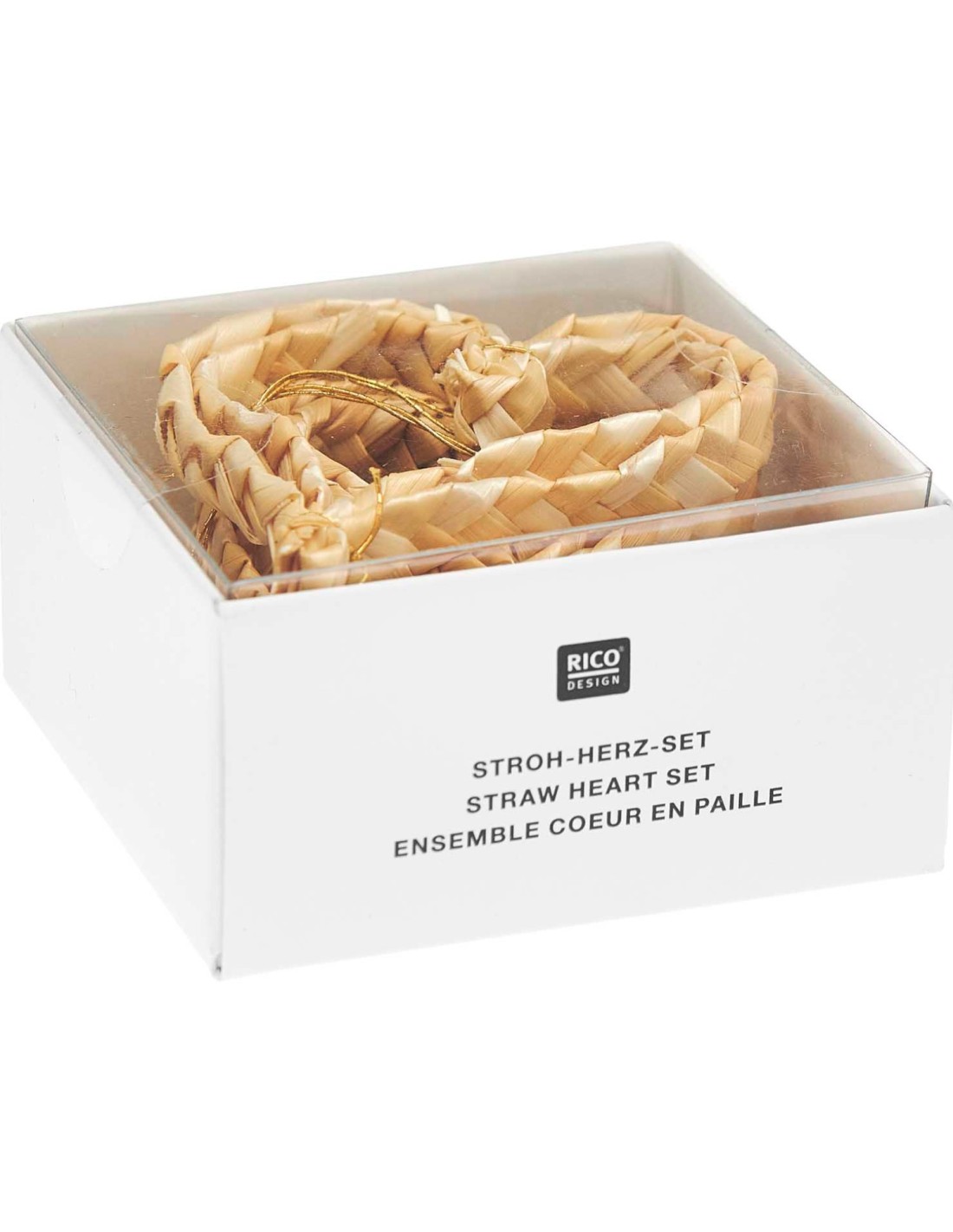 Décorations en paille en forme de coeur, à suspendre dans votre sapin de Noël.