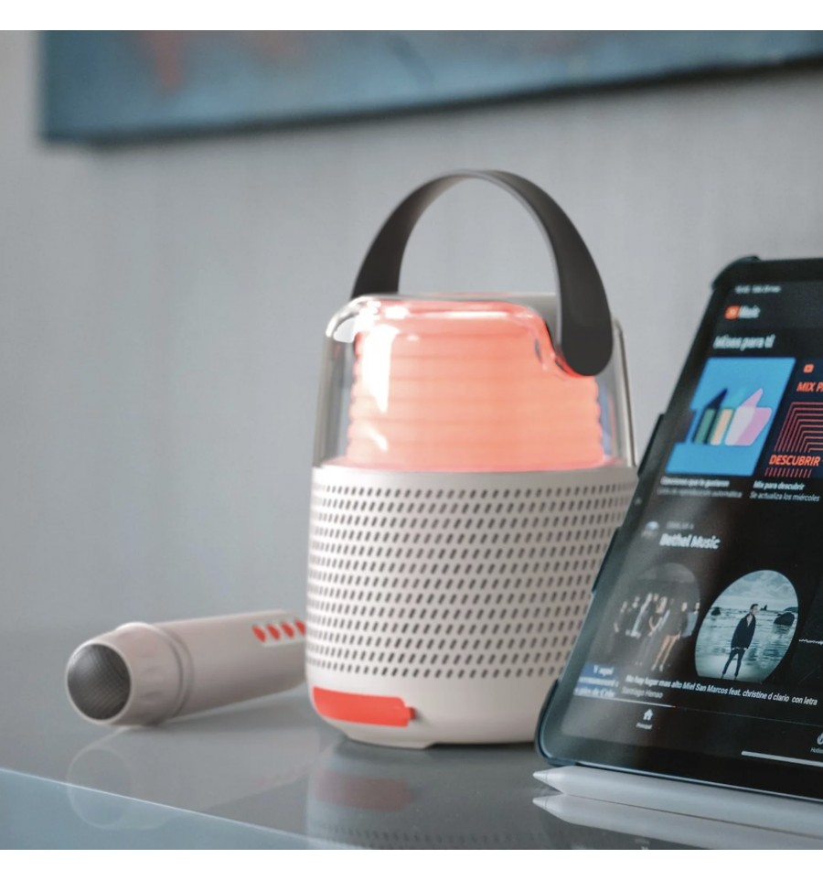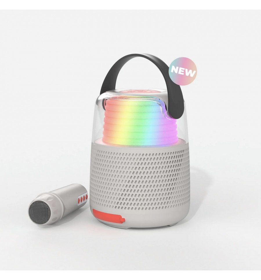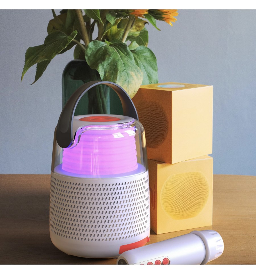 Cette enceinte bluetooth lumineuse (10 effets différents) vous permet d'écouter votre musique mais également de chanter à tue tête en modifiant votre voix grâce à son micro et aux nombreux effets proposés.