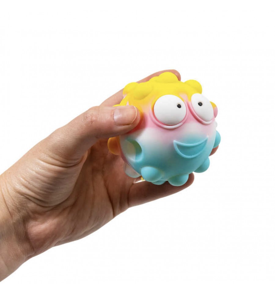 De nombreux jeux sont possibles avec cette balle, l'effet pop it associé aux yeux écarquillés amusera le plus grand nombre.