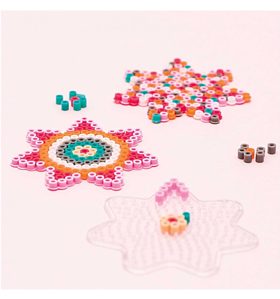 Ce set complet de perles à repasser contient 300 perles de couleurs variées, une plaque en plastique en forme de fleur pour créer votre motif et une pince pour vous aider à placer les perles sur la plaque.