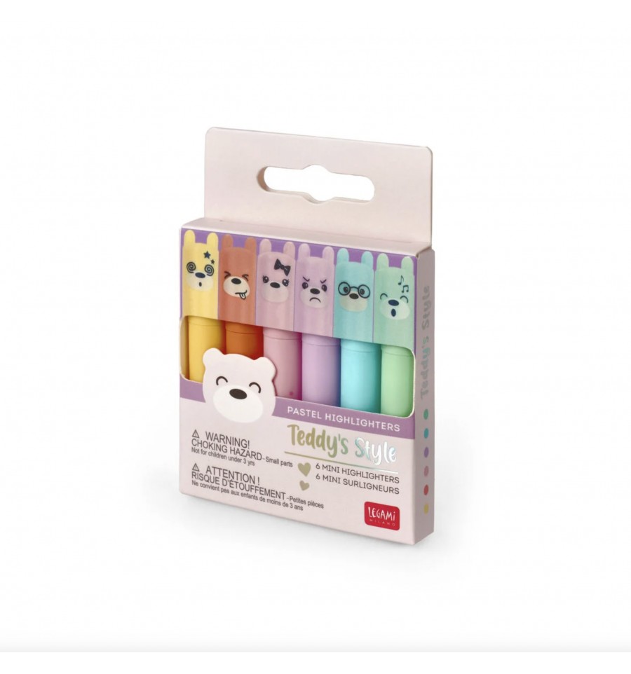 Un set de 6 Mini feutres en forme d'ours aux couleurs pastels, imaginés par Legami pour égayer ses cahiers.