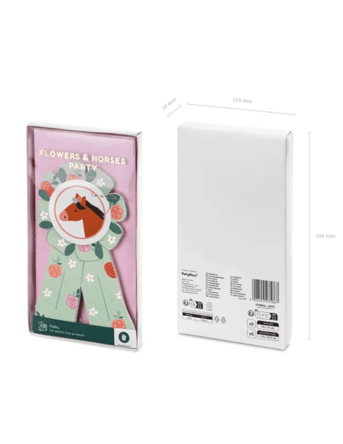 Ce set comprend 6 invitations et leurs enveloppes assorties, parfaites pour un anniversaire sur le thême du cheval ou de l'équitation.