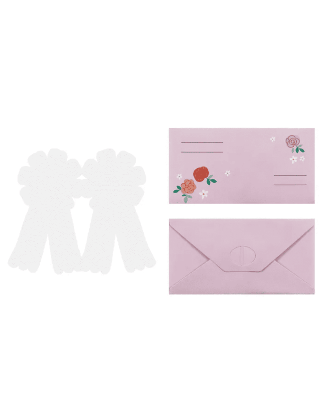 La carte s'ouvre pour que vous puissiez écrire votre texte librement. Les enveloppes fournies sont illustrées de jolies fleurs trop mignonnes.