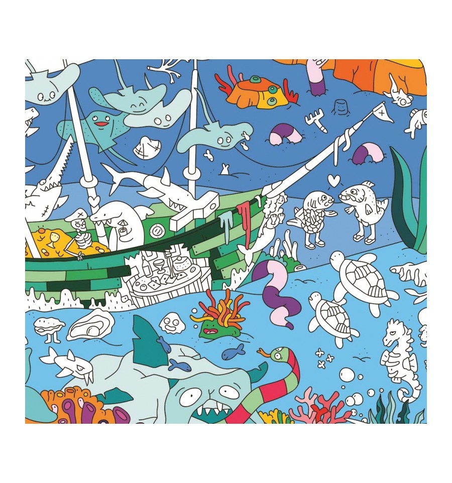 Un poster géant sur le thème de la mer à colorier par Omy design.