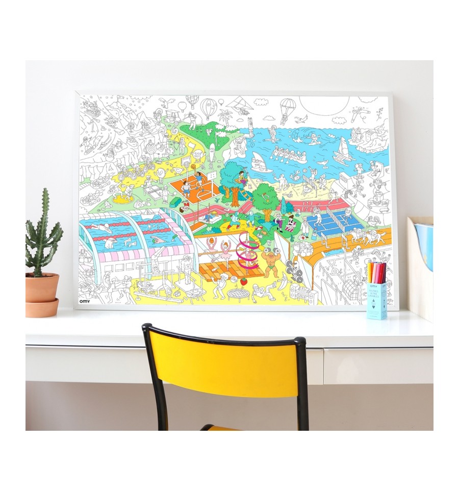 Un poster géant sur le thème de la jungle à colorier par Omy design.