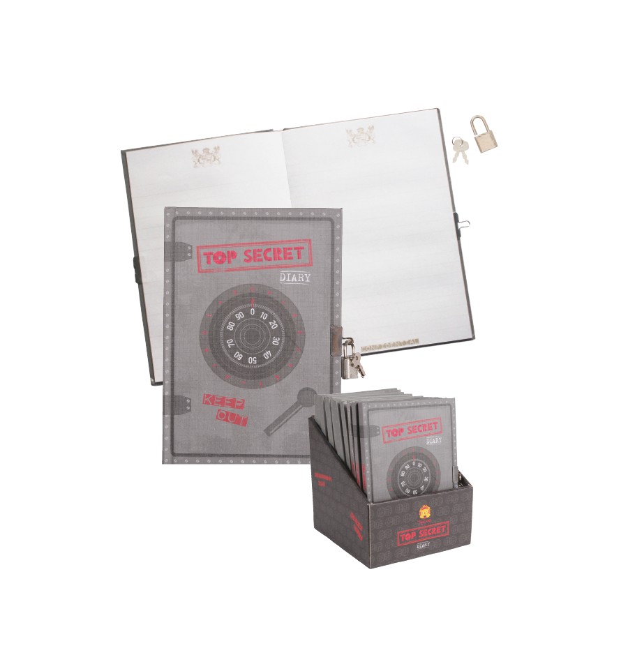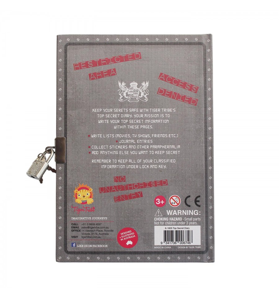 Le journal intime "Top Secret" Tiger Tribe contient 120 pages blanches lignées et avec l'inscription CONFIDENTIEL en bas de page.