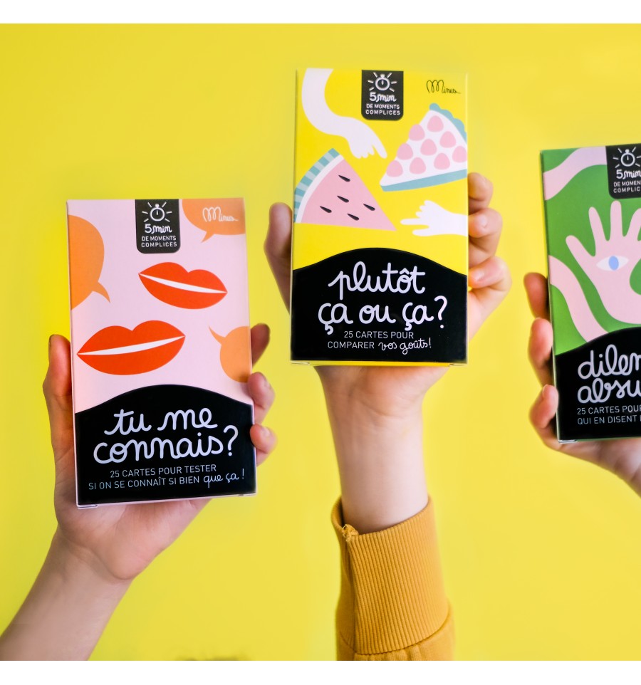 Ce jeu de cartes composé de 25 pour comparer ses goûts et passer un bon moment de complicité et de rire avec ceux que vous aimez.