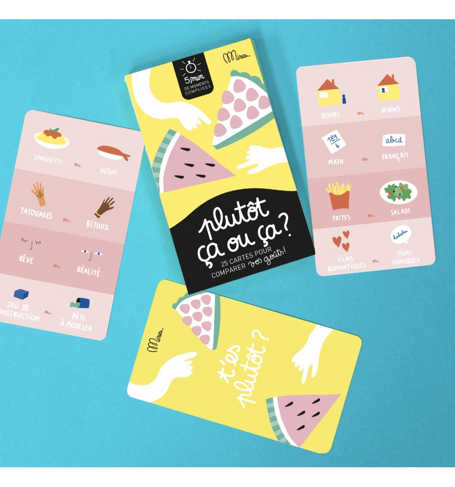 Ce jeu de 25 cartes vous permettra de comparer vos goûts, de découvrir vos points communs et vos différences.