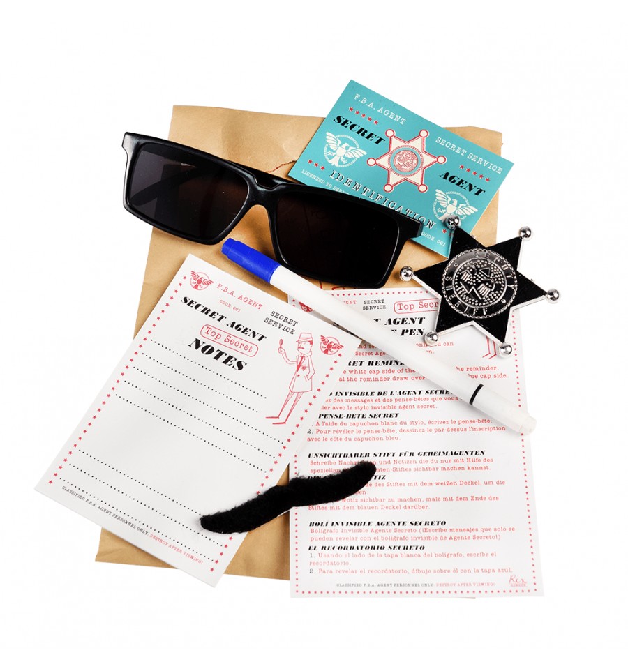 Ce kit d'espionnage agent secret Rex London est idéal pour mener des enquêtes et jouer aux Sherlock Holmes. Le kit est très complet et comprend notamment des lunettes spéciales agent secret qui possèdent des miroirs sur les extrémités des verres. On peut ainsi observer discrètement ce qui se passe derrière nous.