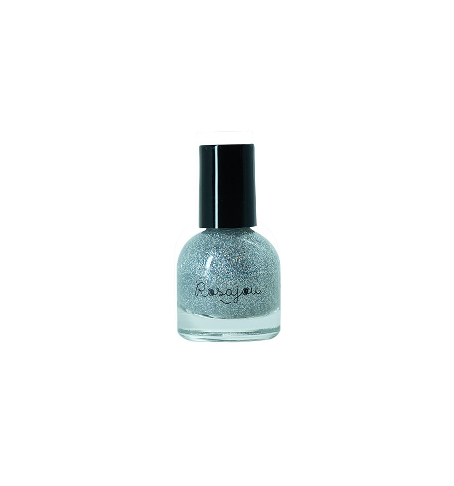 Ce vernis argenté est l'indispensable de Rosajou parce qu'il peut se mettre sur tous les autres vernis afin de leur apporter de la brillance et des paillettes !