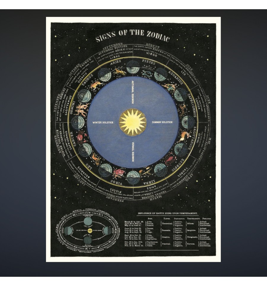 Pour les amateurs d'astrologie Cavallini a imaginé cette affiche rassemblant de superbes illustrations sur les signes du zodiaque.