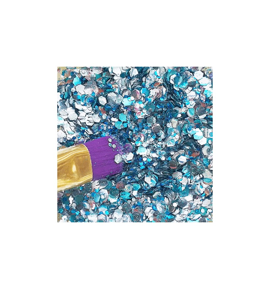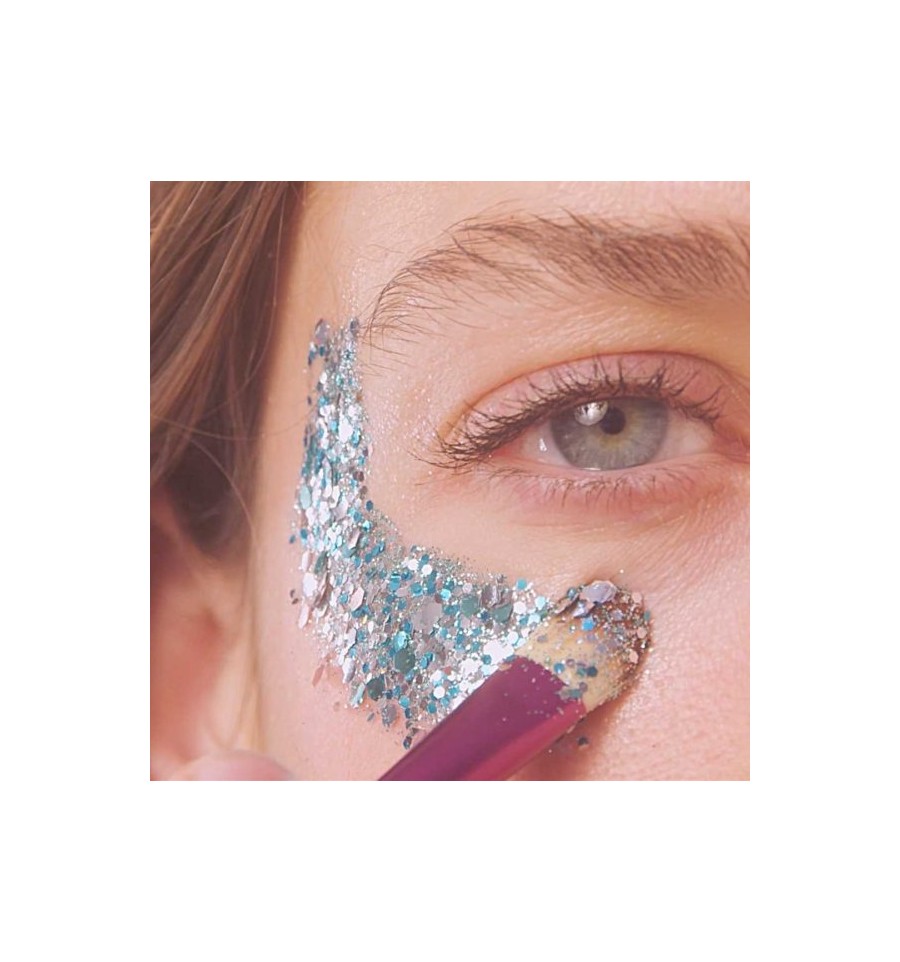 - munissez-vous d'un pinceau pour appliquer un peu de baume au beurre de karité Sisi La Paillette (sinon toute crème hydratante fera l'affaire), avant d'y déposer les paillettes.