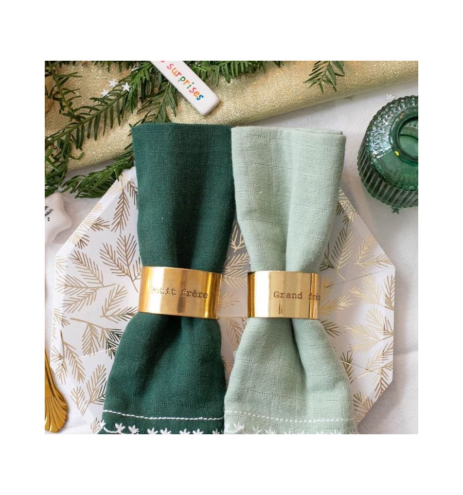 La serviette à table c'est utile, mais entourée d'amour c'est encore mieux: craquez pour ce rond de serviette en laiton Petit Frère !