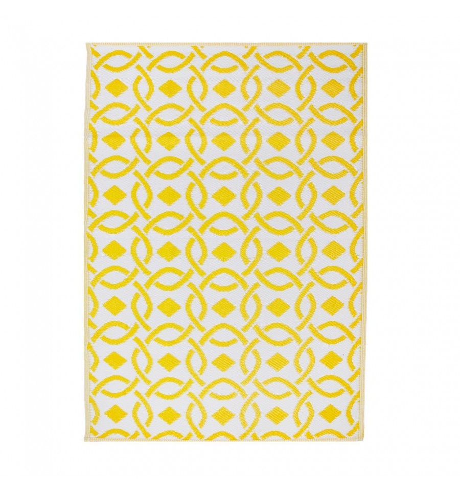 Ce tapis en plastique Jaune Talking Tables, façon natte tressée, est très graphique et coloré. On adore sa couleur jaune lumineuse.