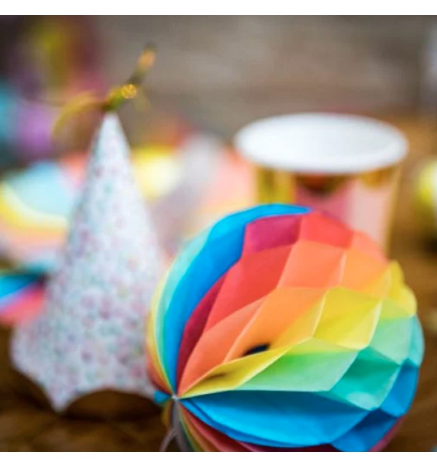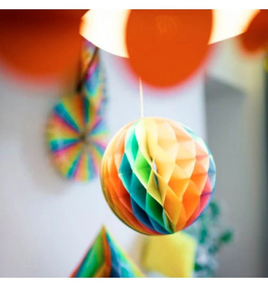 Ce lot de 5 boules arc-en-ciel de la marque Artyfêtes sublimera la décoration de votre évènement.