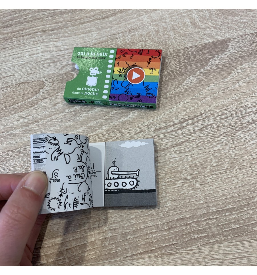 Les flipbook pour un cinéma de poche avec "Baillons/Dormons" (conseillé aux insomniaques), "Un anniversaire cauchemar", "Inspiration/expiration", "Je t'aime/ I love you" en langage des signes, "Fait froid/ fait chaud".