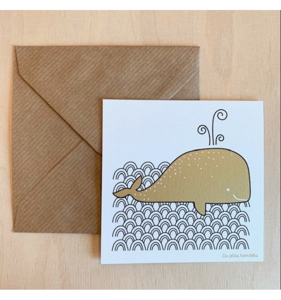 Avec sa baleine dorée, cette carte ci accompagnera parfaitement un cadeau de naissance par exemple.