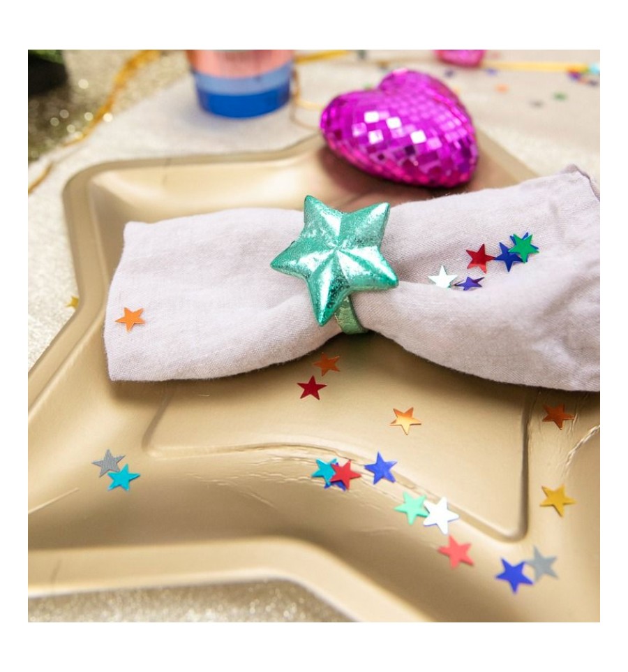 Un sachet de confettis métallisés en forme d'étoiles multicolores pour décorer la fête de Noël ou du Réveillon, à parsemer sur la table, dans des ballons transparents, à coller sur des fils...
