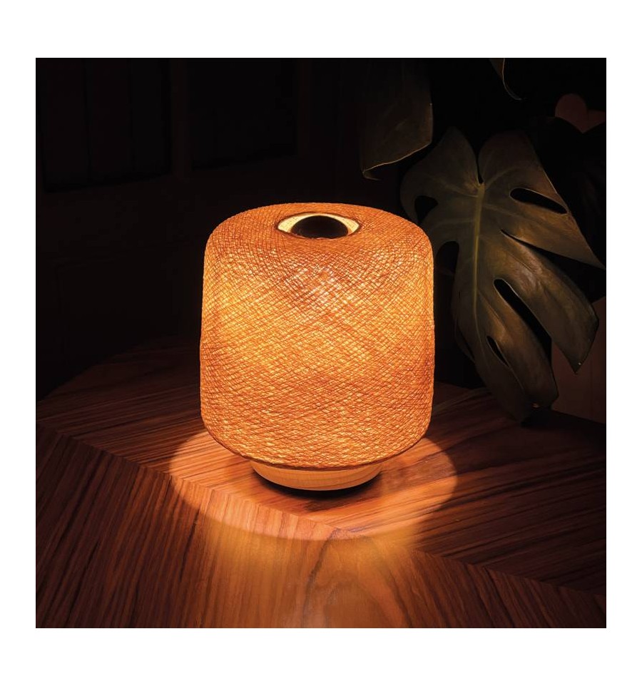 Matière : abat-jour tissé à la main, base en hêtre brut fabriquée en France.