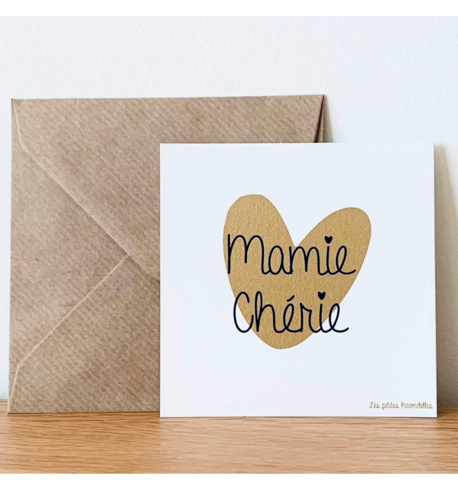 Carte Mamie chérie coeur doré - Les Petites Hirondelles