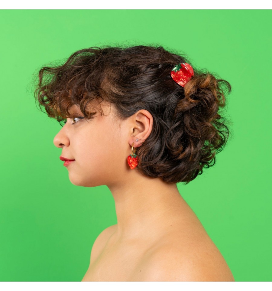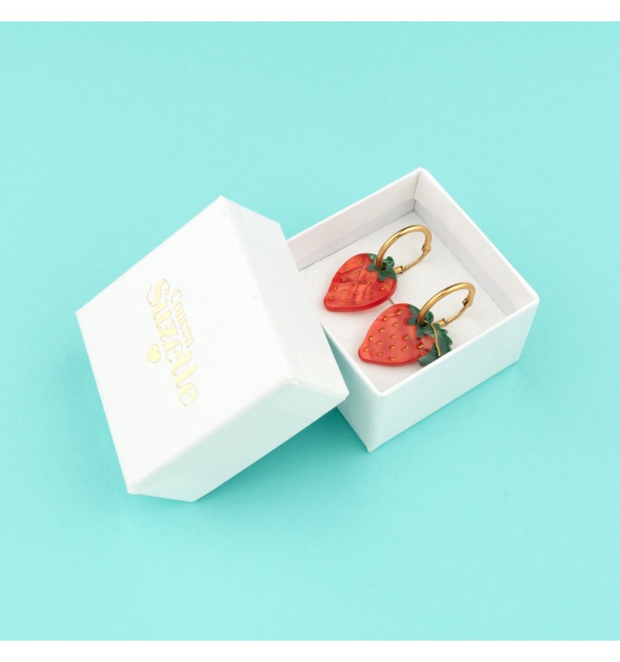 Cette jolie paire de boucles d'oreilles originale en forme de fraises aux couleurs éclatantes est signée Coucou Suzette.