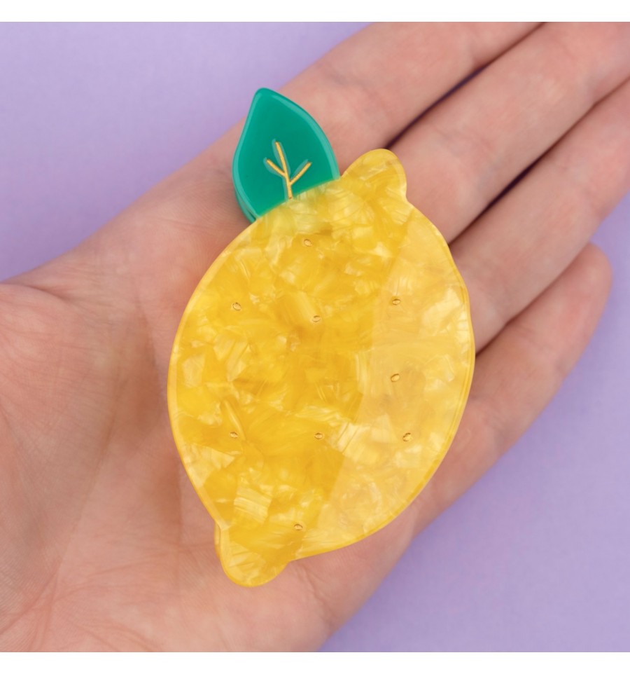 Cette jolie pince à cheveux en forme de citron aux couleurs éclatantes est signée Coucou Suzette.