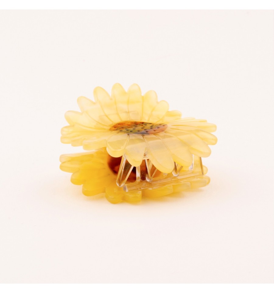 Cette jolie pince à cheveux en forme de fleur de tournesol à la couleur jaune éclatante est signée Coucou Suzette.