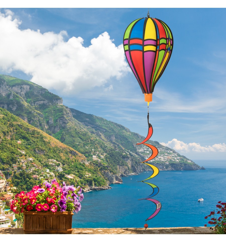 Colours in Motion présente son éolienne en forme de montgolfière : le vent la fera tournicoter pour une décoration mouvante. Constituée d'une montgolfière et d'une spirale, elle peut convenir à l'extérieur comme à l'intérieur.