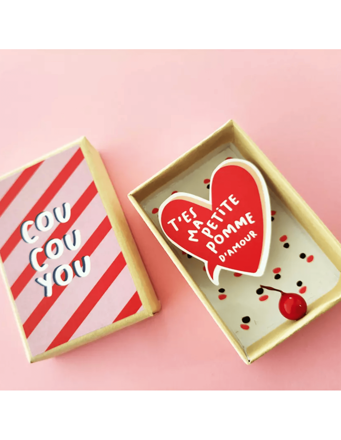 Lorsque vous ouvrirez cette petite boite, vous découvrirez une pomme rouge en papier portant le message "T'es ma petite pomme d'amour".