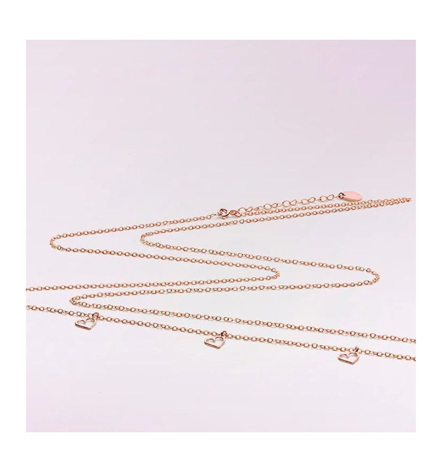 La chaine en or rose de cache cœur est pensée pour. Ajustable, elle est agrémentée de trois petits cœurs sur un côté.
