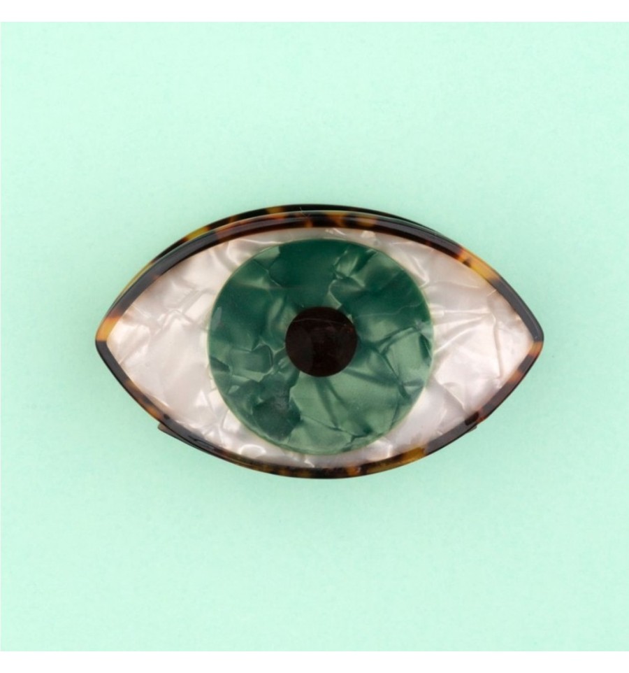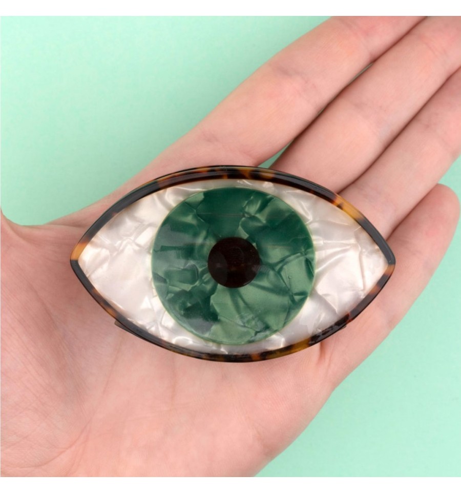 Coucou Suzette a imaginé cette grande pince à cheveux en forme d'oeil vert.